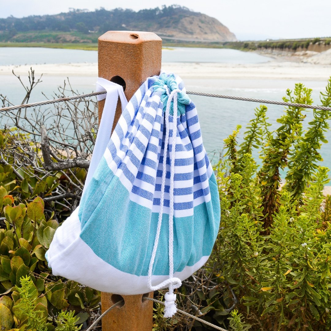Your go-to bag has a built in towel! That's right, you get two amazing products in one. This is one of our most versatile must-have bags for this season. Perfect for an outdoor concert, beach, picnic, or fireworks show, this versatile cotton backpack will come in handy!