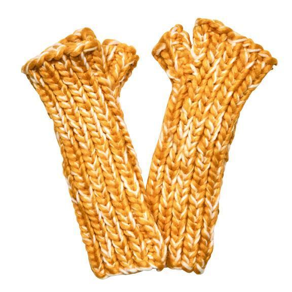 Stay warm with these chunky marled knit gloves! The bright yarn and chunky yarn make these gloves a great winter accessory.