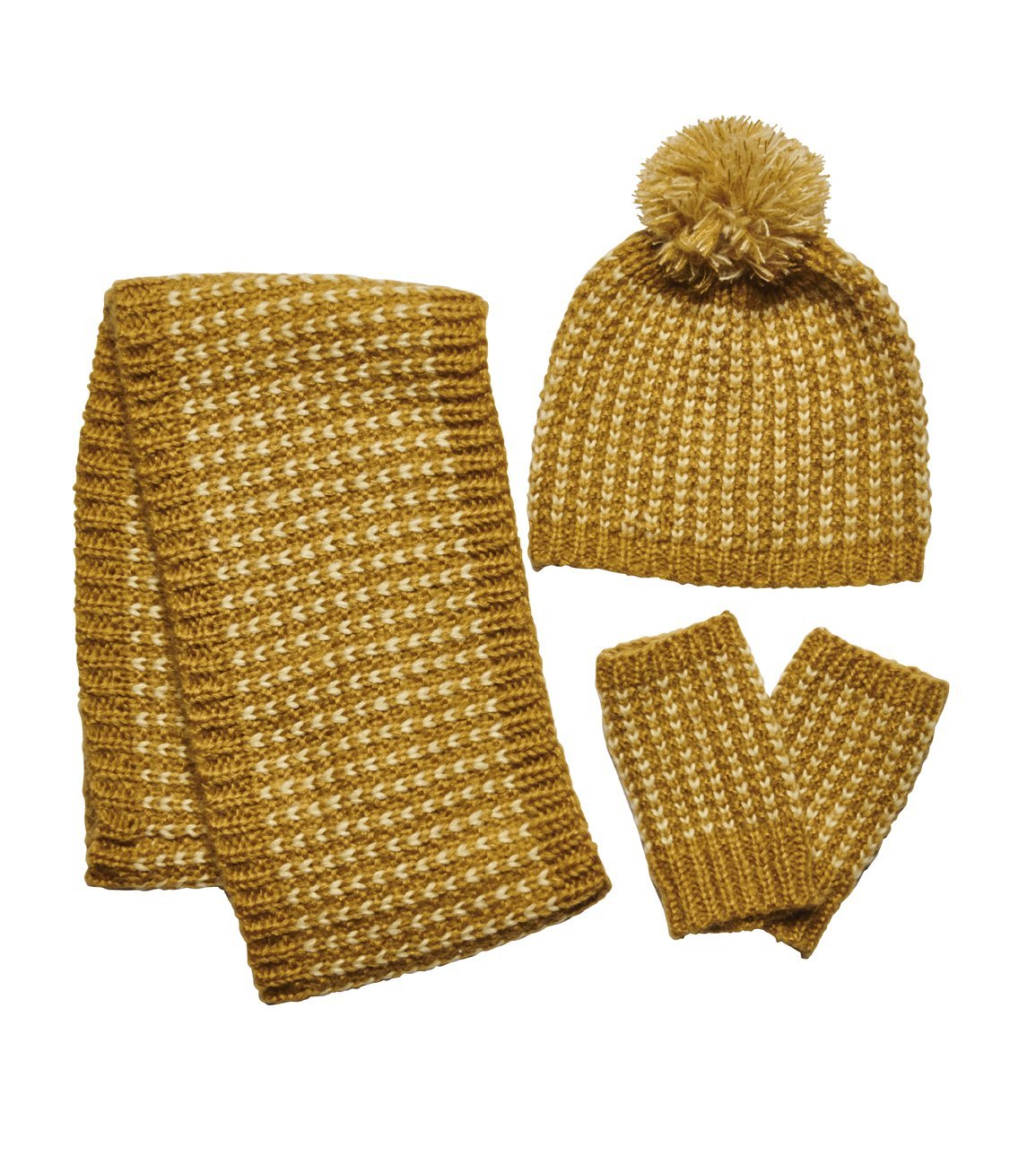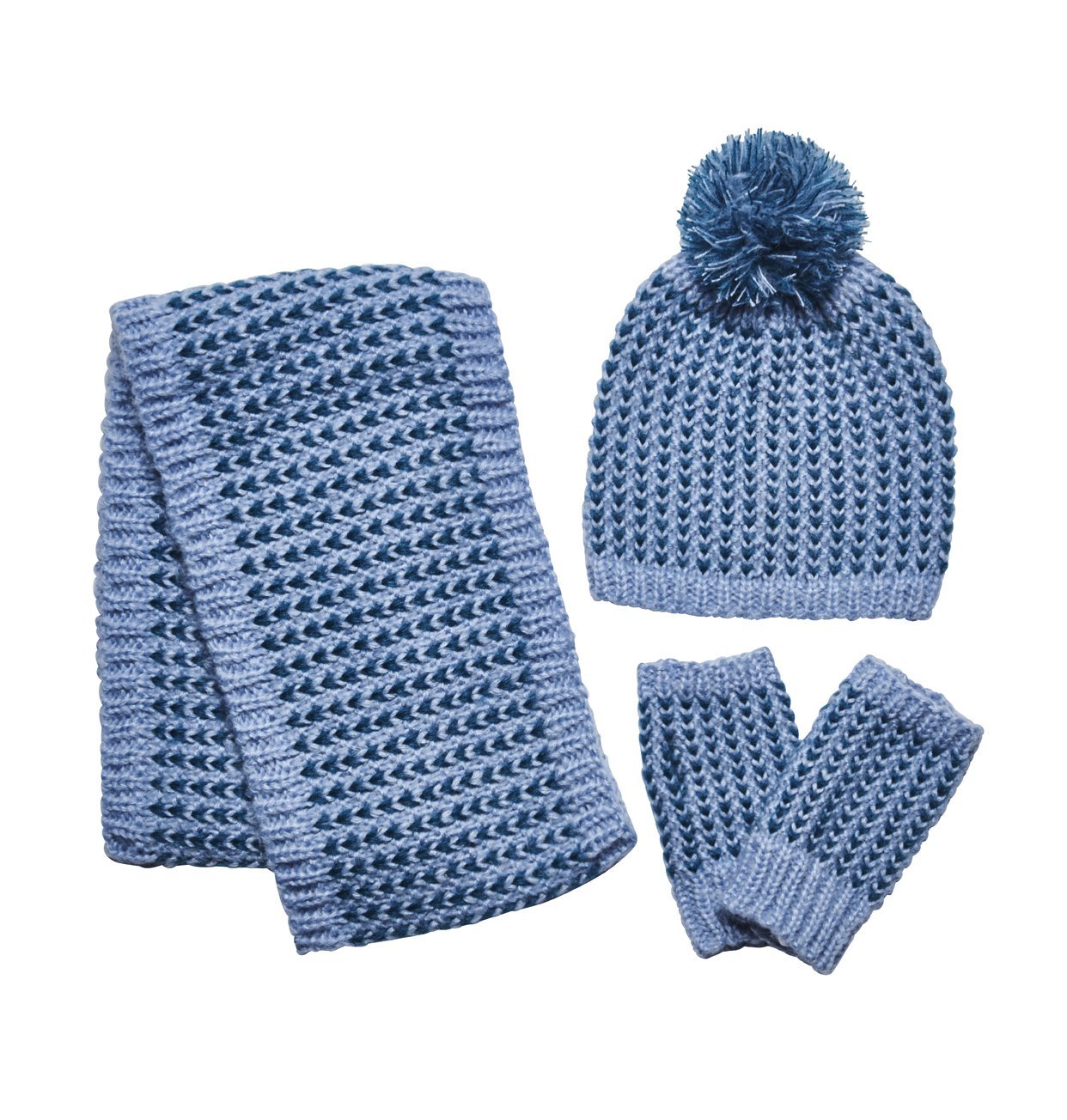 - Includes matching scarf, hat and gloves - 100% acrylic - Women's one size
