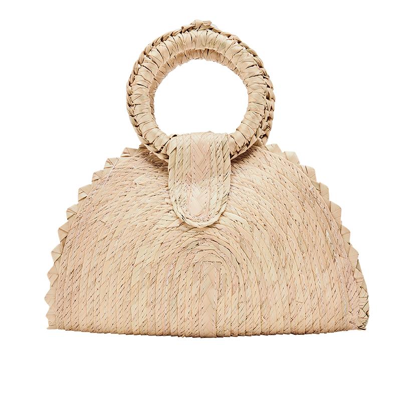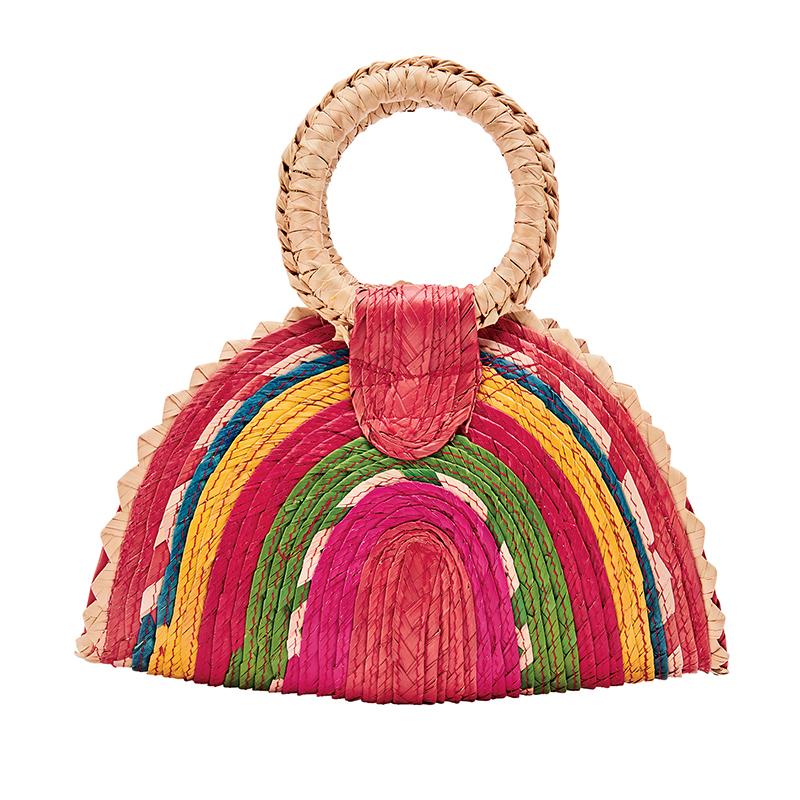 Our darling artisan crafted mini quesadilla palm straw toddler tote comes with a velcro closure.