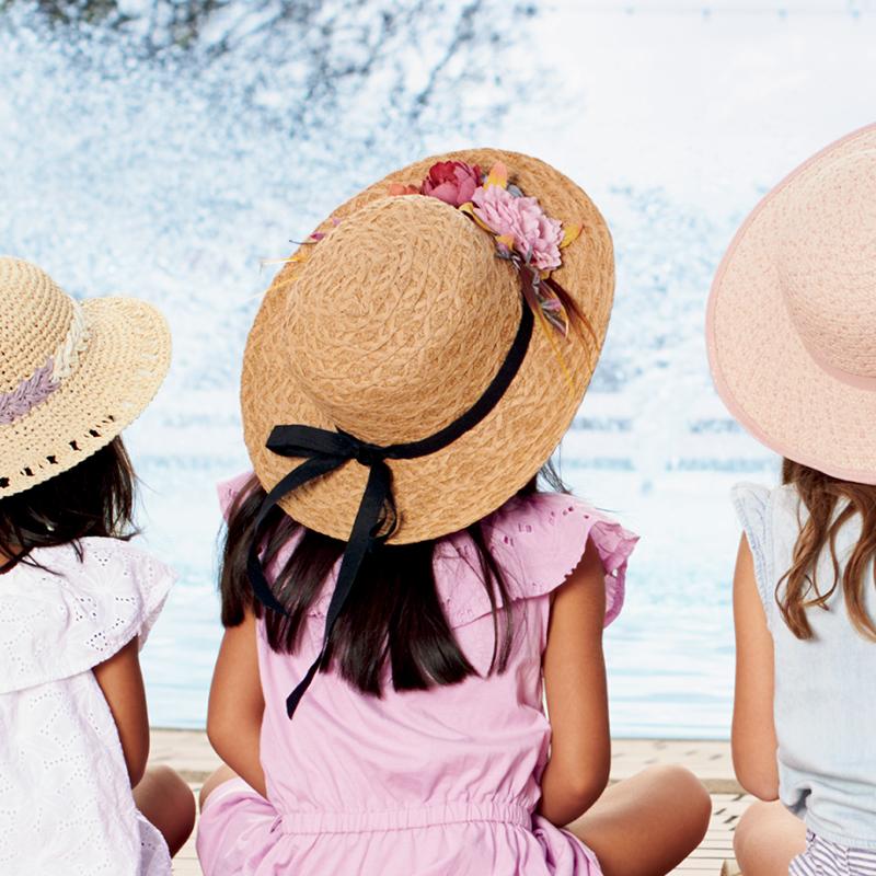 This paperbraid floppy features a lovely floral garland that's perfect for a warm sunny day. Dress your kids in this hat for days in the park or the garden for a picturesque summer memory. 80% paper, 20% polyster 3" brim Kids 5-7 Years