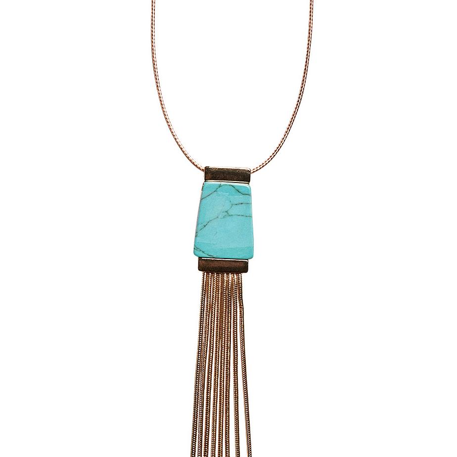 Add a pop of turquoise this season! This beautiful pendant necklace adds a great color contrast to any outfit.