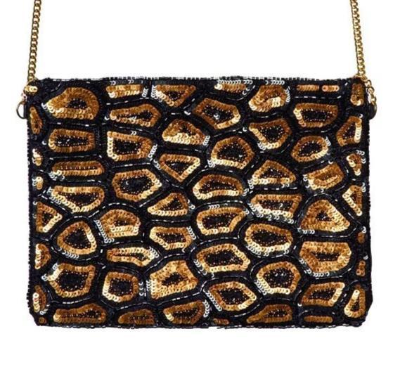 Sequins Animal Print Clutch w/ Gold Chain Strap (BSB3548) -FS