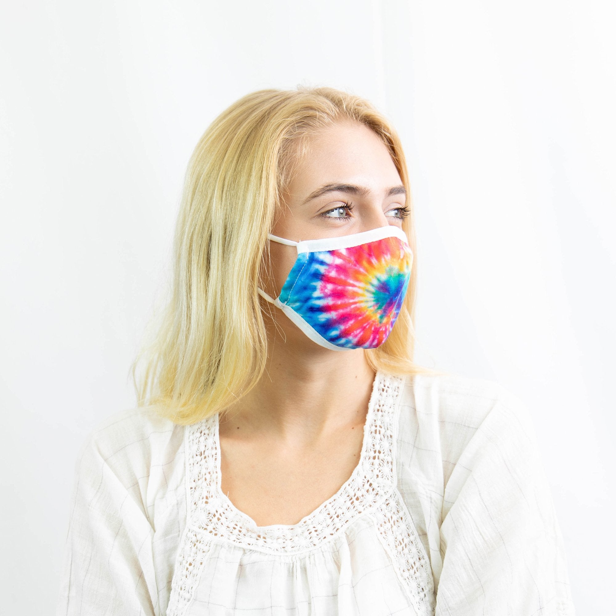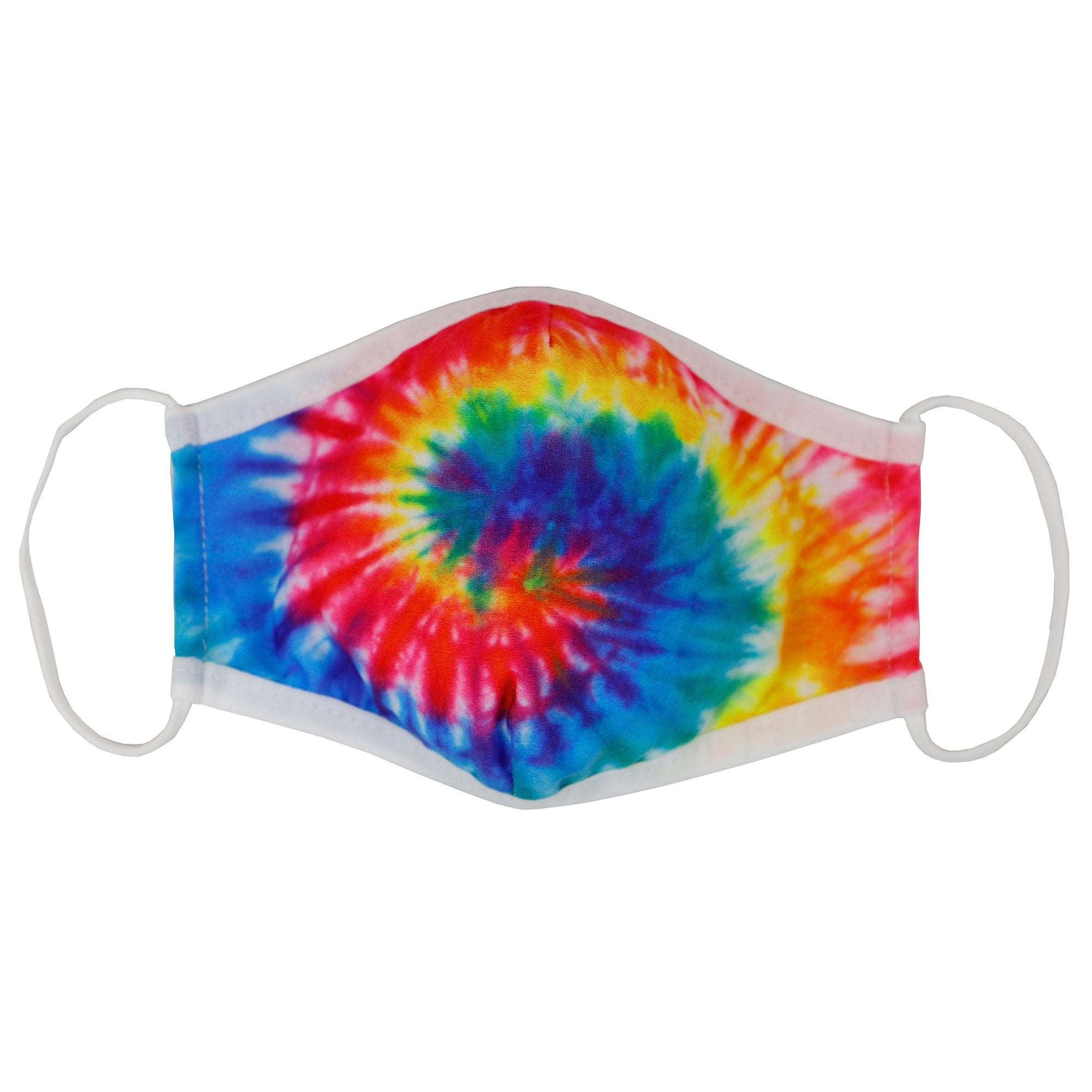 Reusable non-medical mask with cool tie-dye print. Get on the tie-dye bandwagon with this printed fabric mask. Bright colors that will help you look cool too.