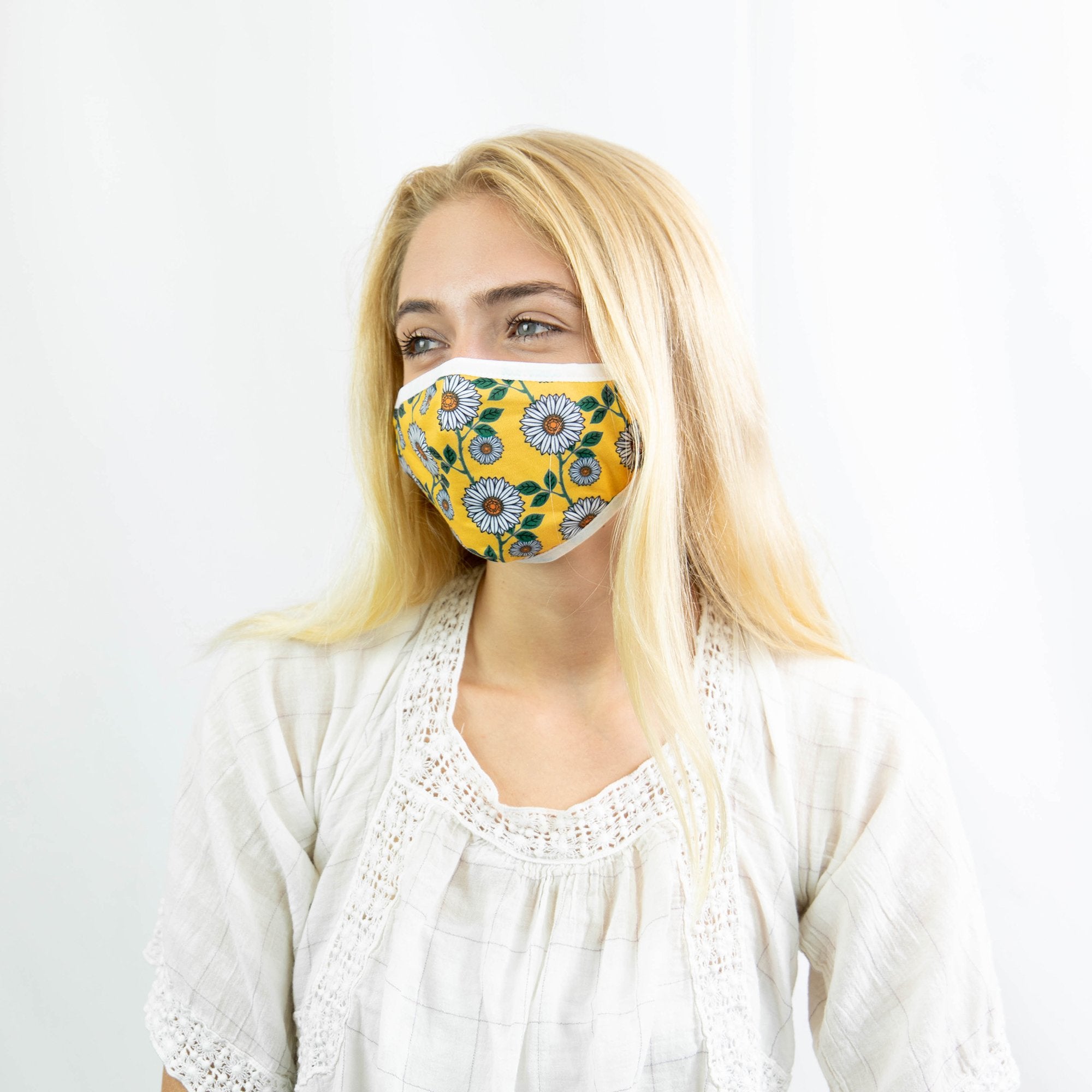 Because nothing means more to us than family, we made these face coverings to help you stay protected and look cute at the same time. Yellow colored masks with wildflower prints that will help you stay safe while still looking cool.