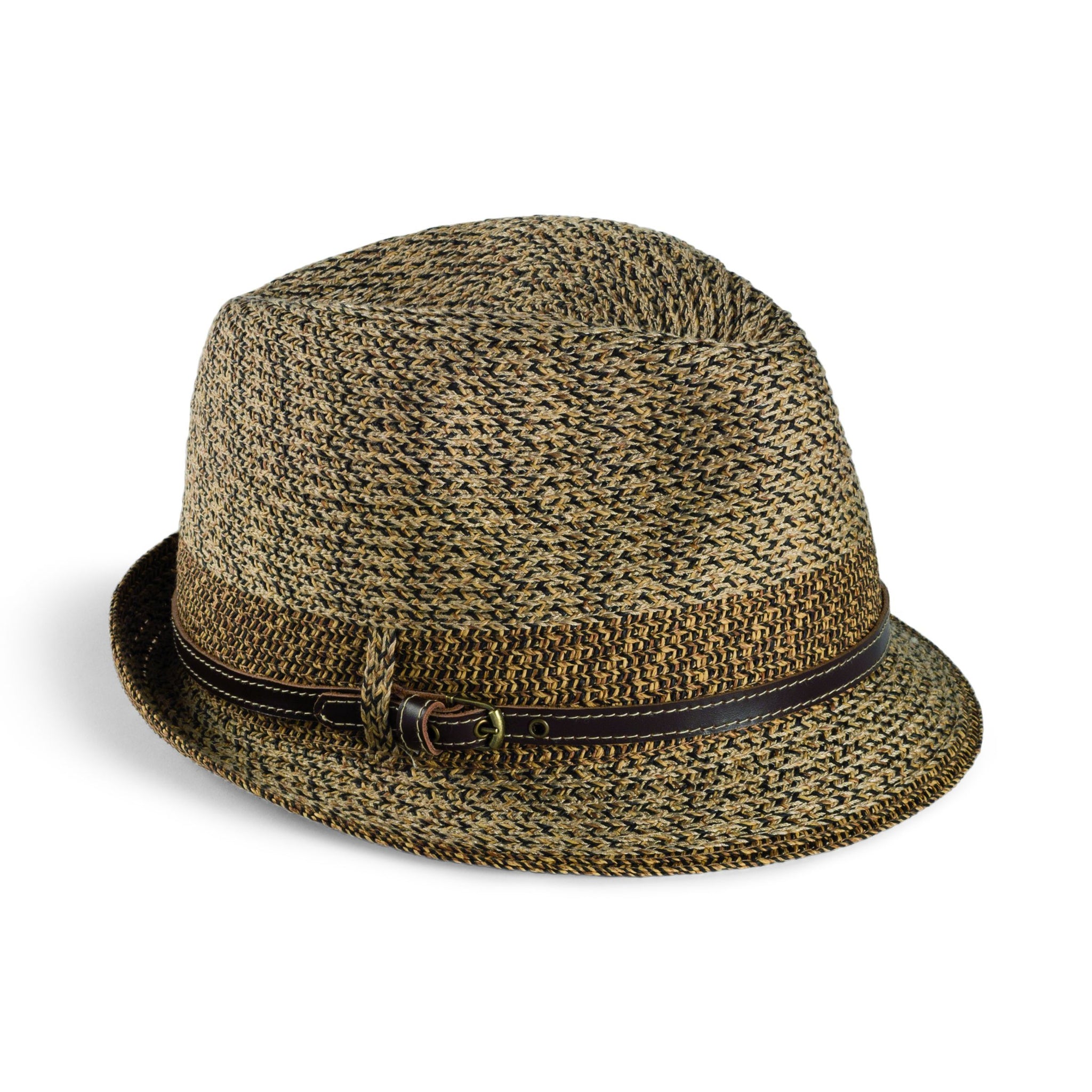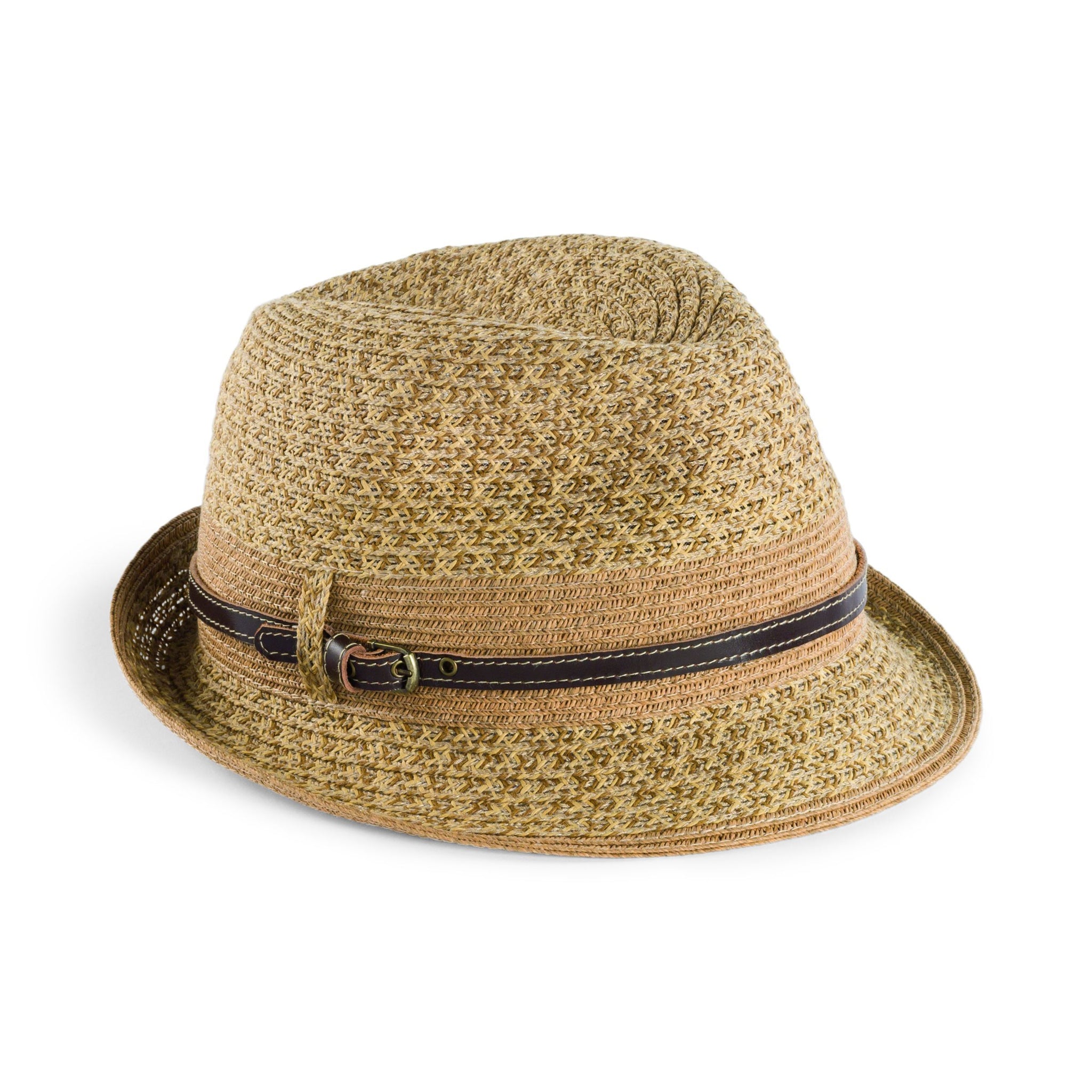 Women's Mixed braid Fedora with stitched row middle and faux leather band with buckle.