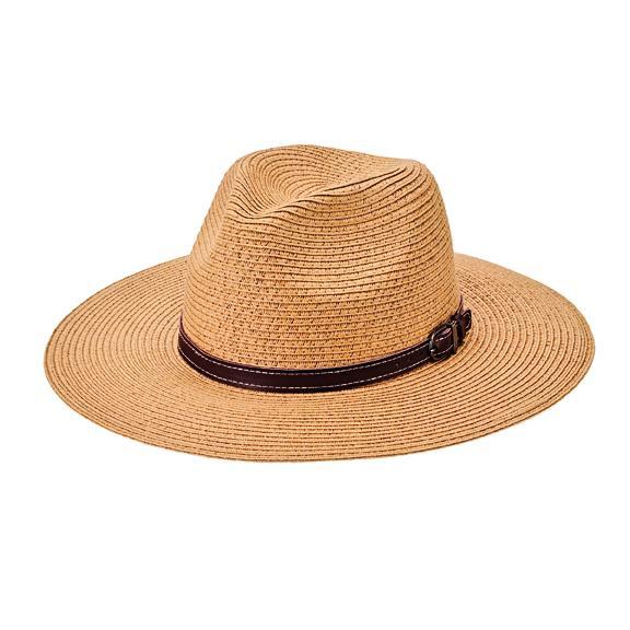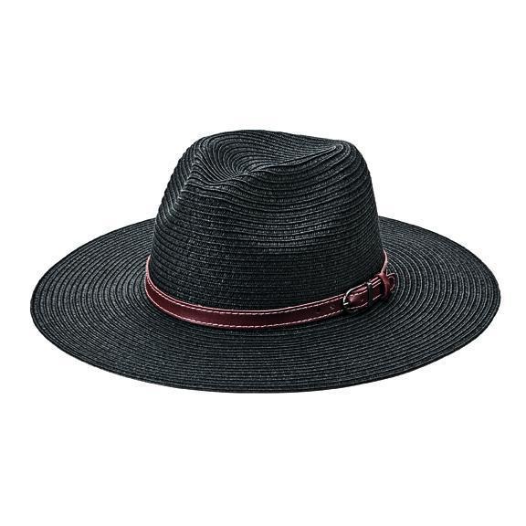 Women's black fedora with faux leather band and buckle (PBF7339)
