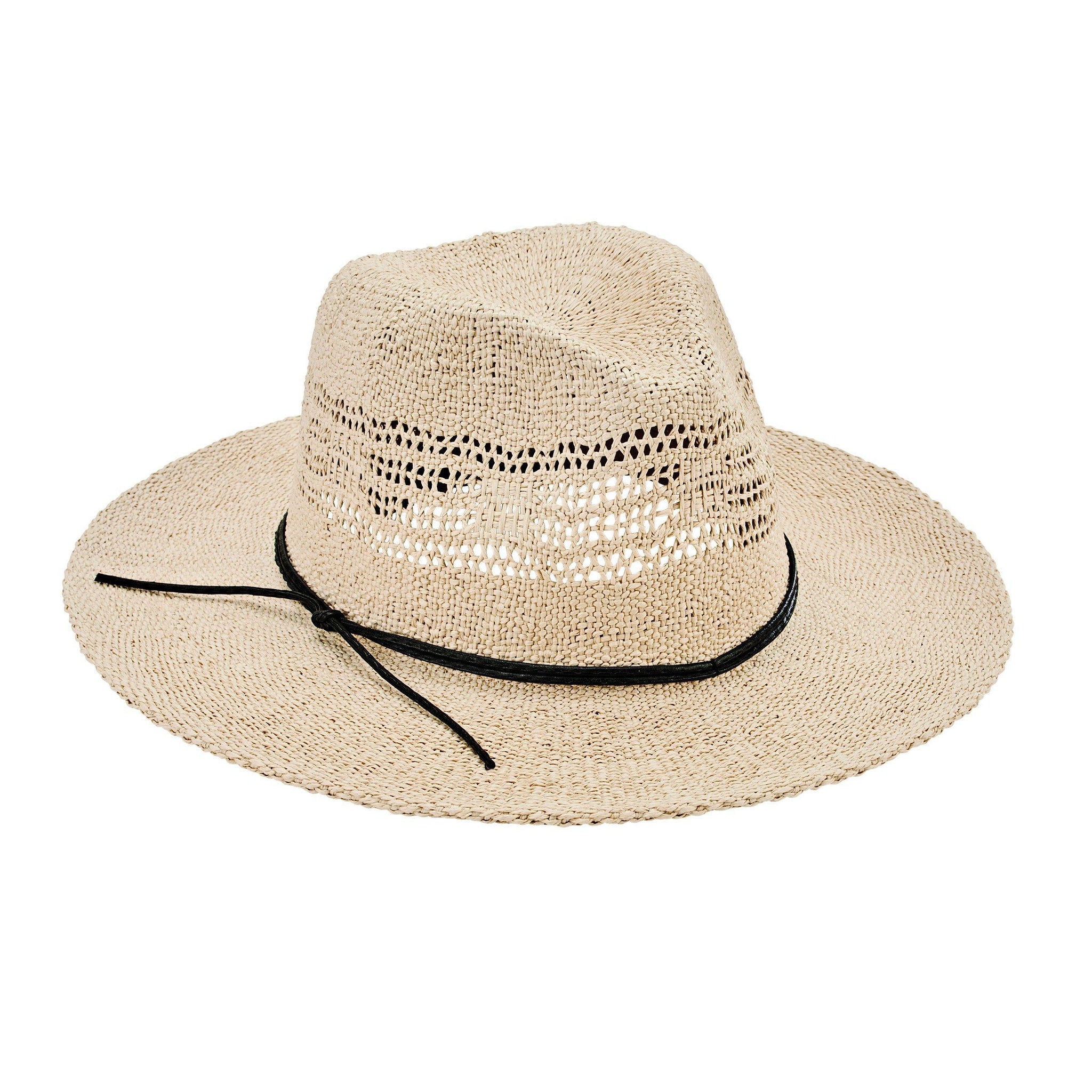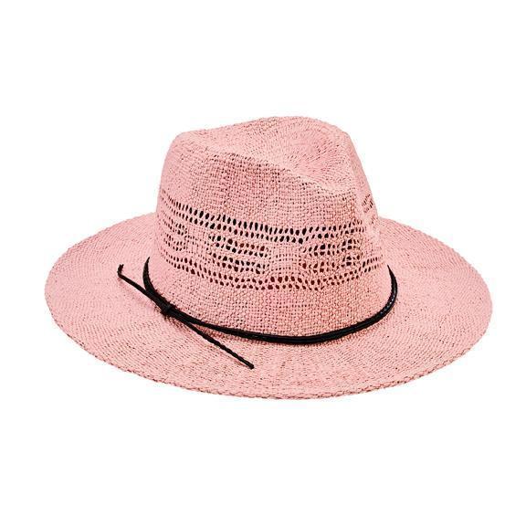Set the trend this season in our blush woven fedora with faux leather trim.
