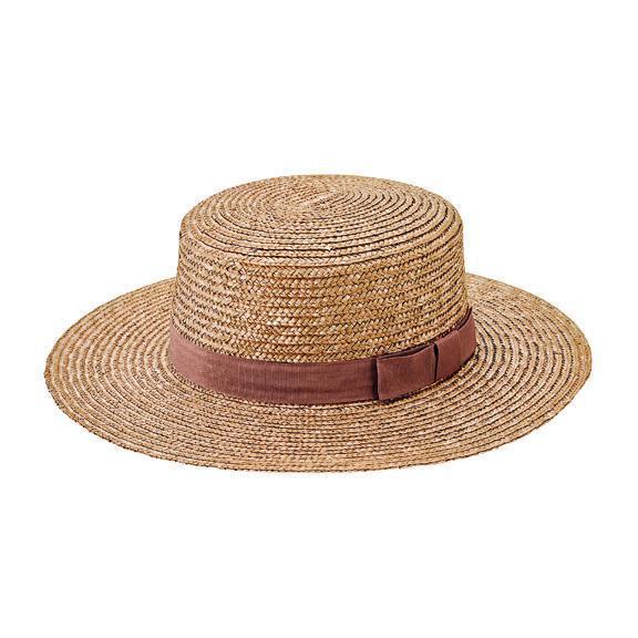 Set sail this season and make waves in our wheat straw camel boater with grosgrain trim.