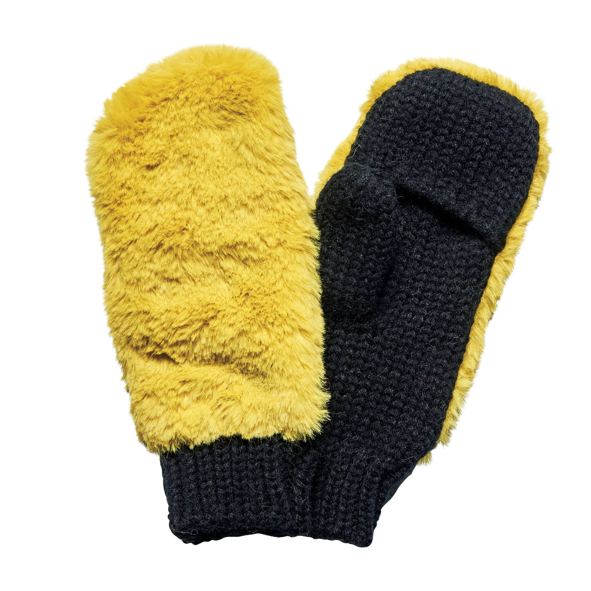 These faux fur gloves are a great way to make a statement and feature a contrasting knit palm.