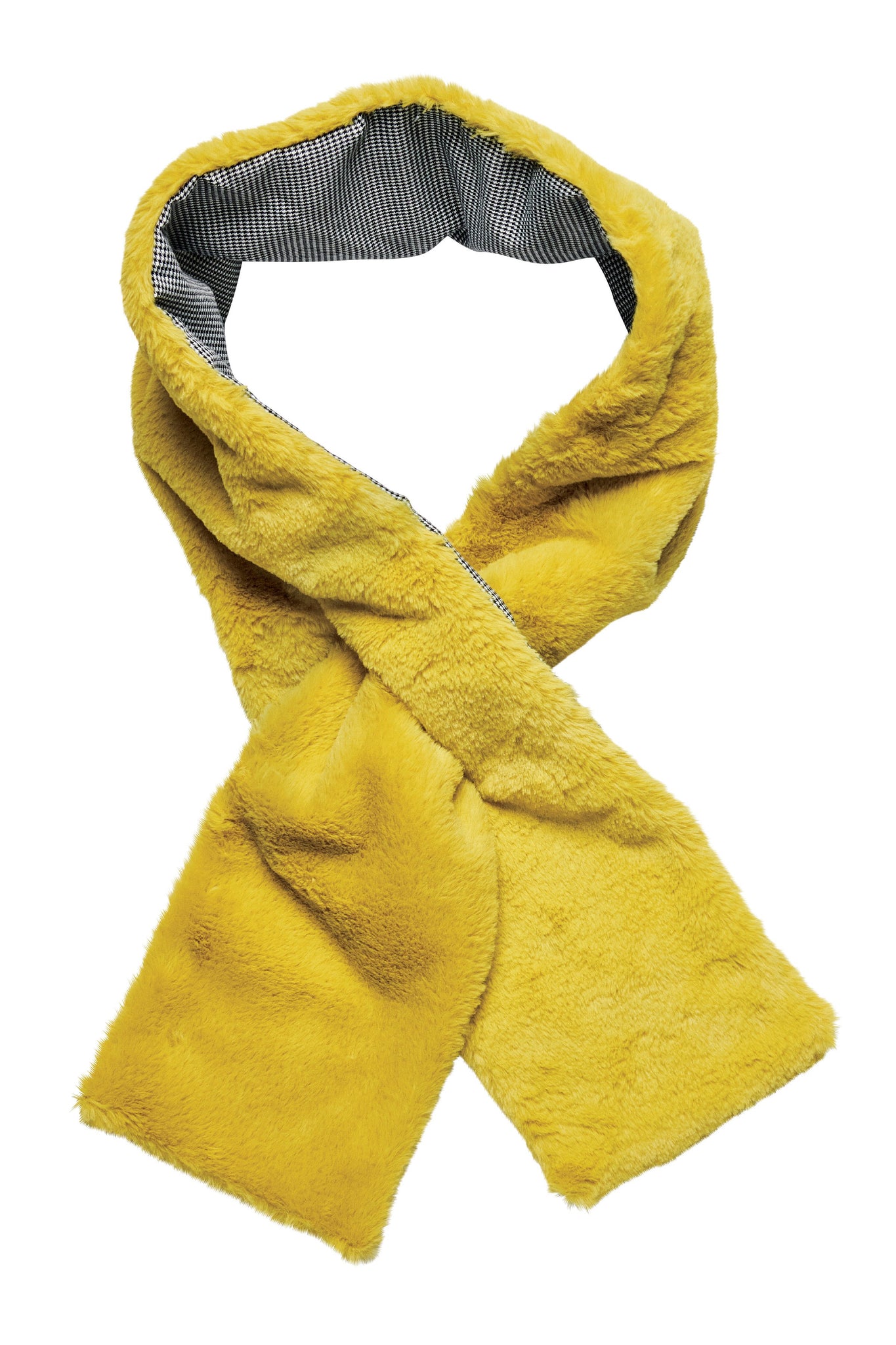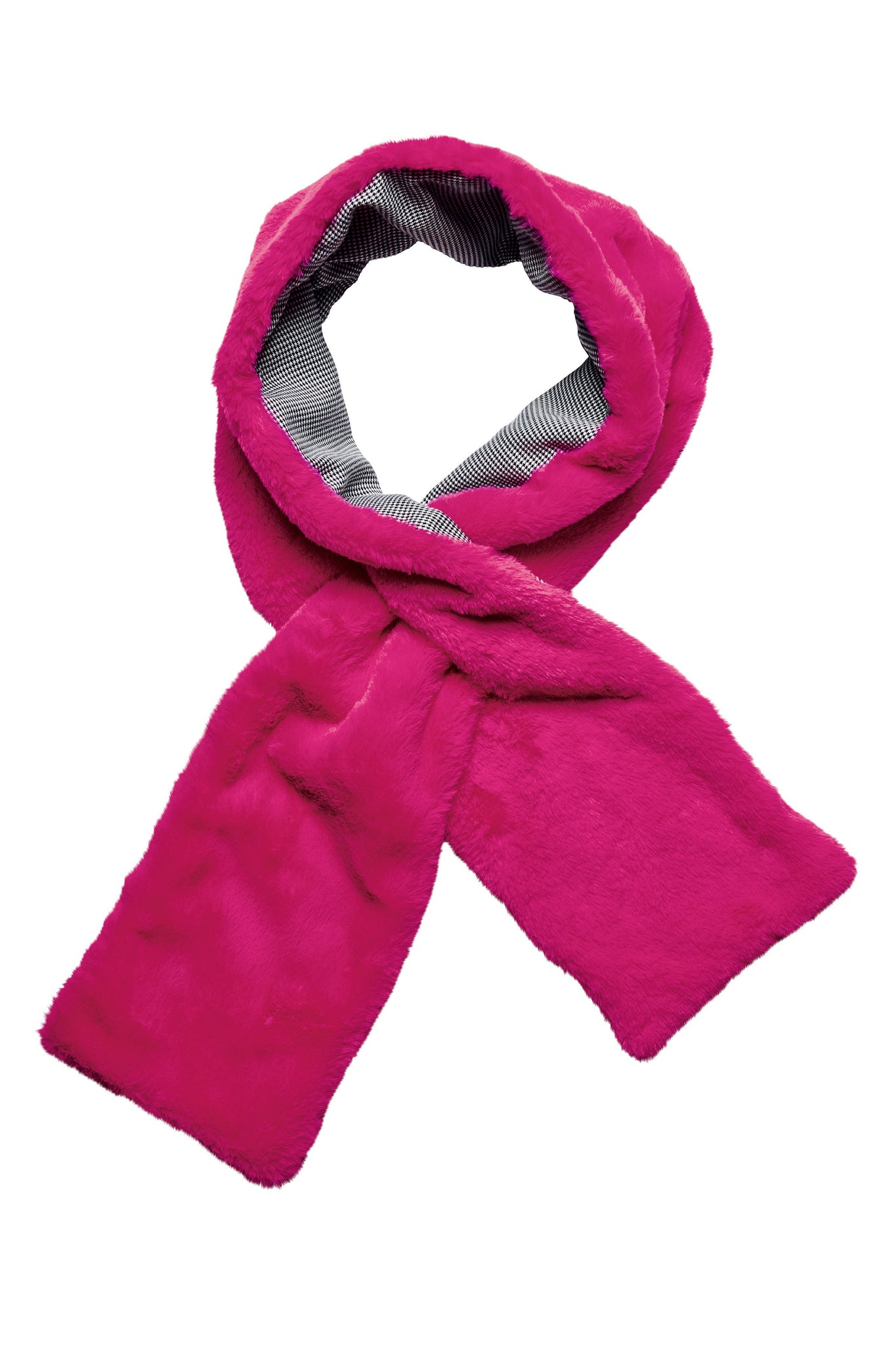 Turn heads with this faux fur scarf! This scarf comes with a chic herringbone lining and is the perfect piece to make a statement with.
