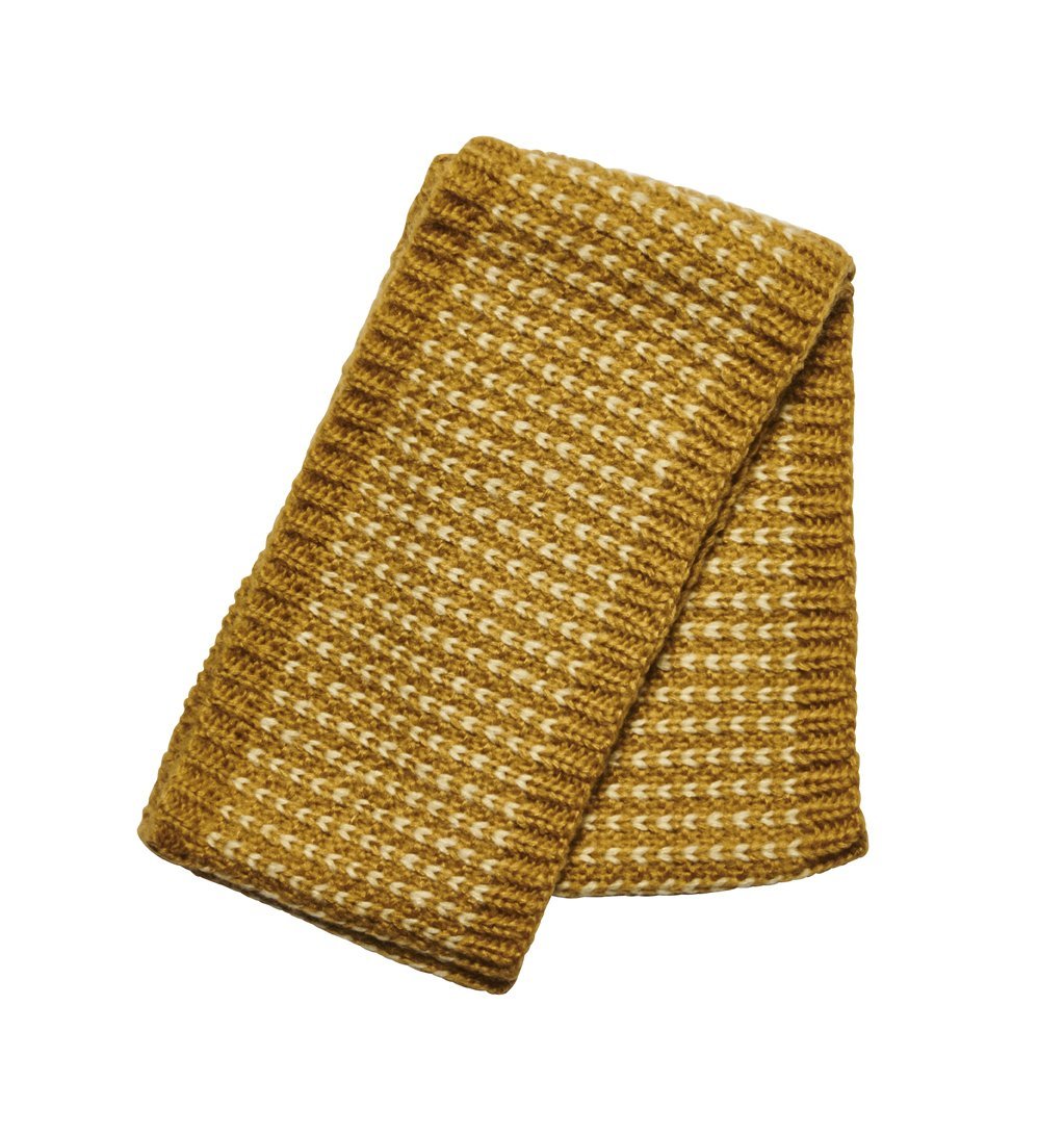 This infinity scarf features a contrasting heart pattern and is sure to keep your neck warm.