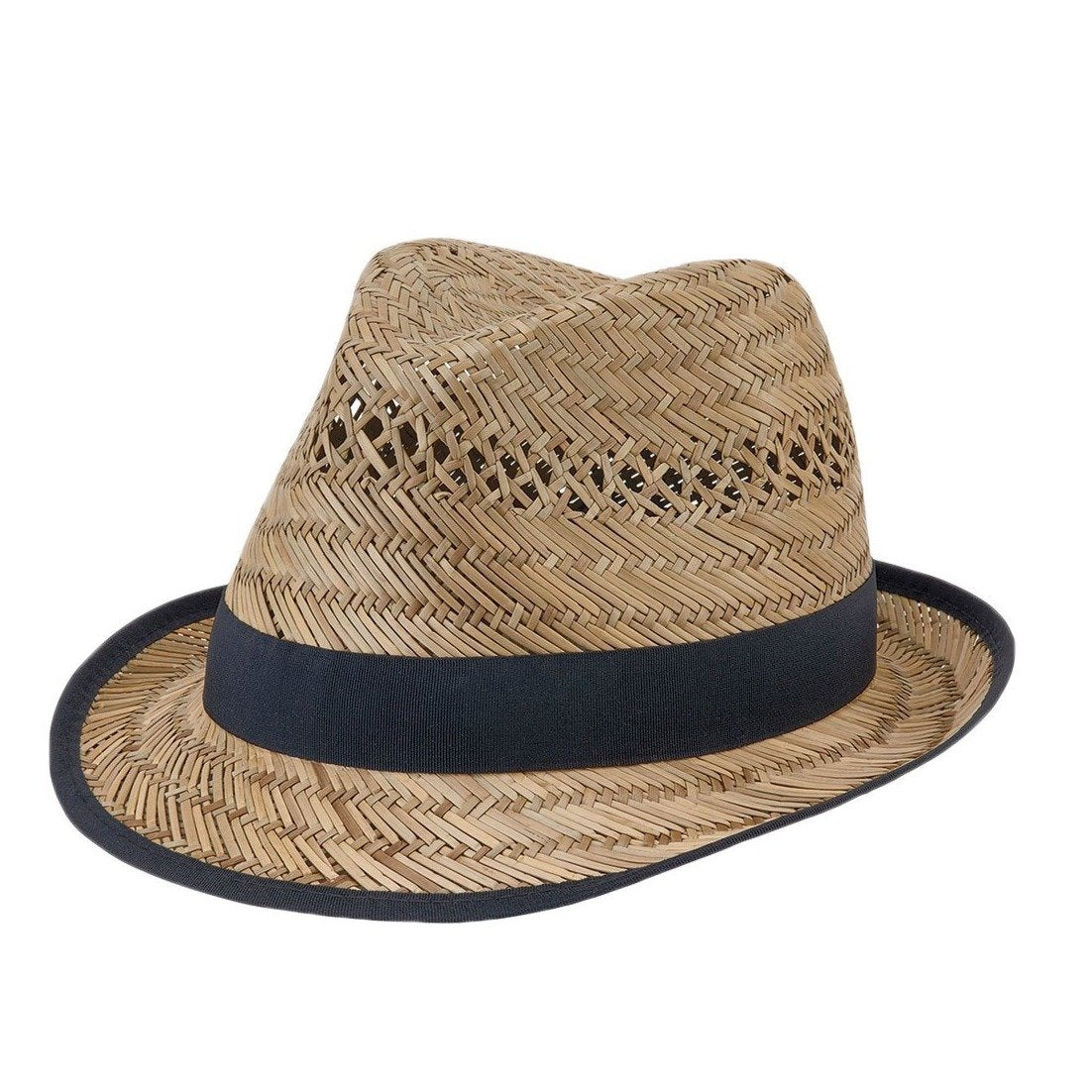 Seagrass fedora with grosgrain trim on crown and brim edge.