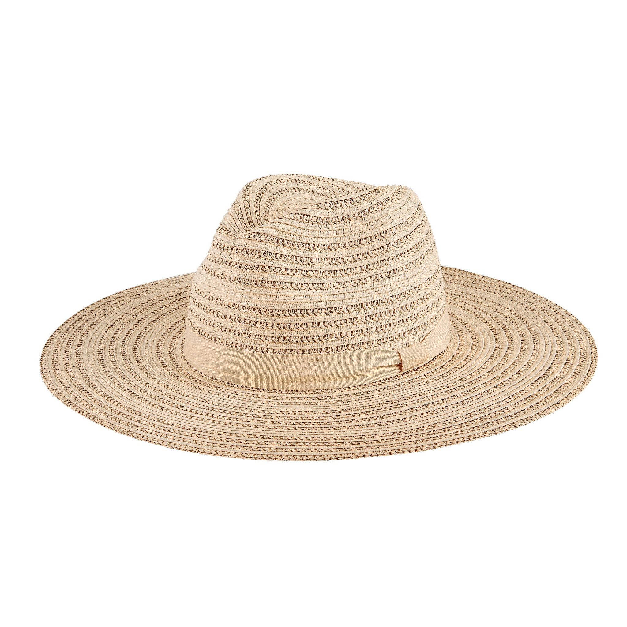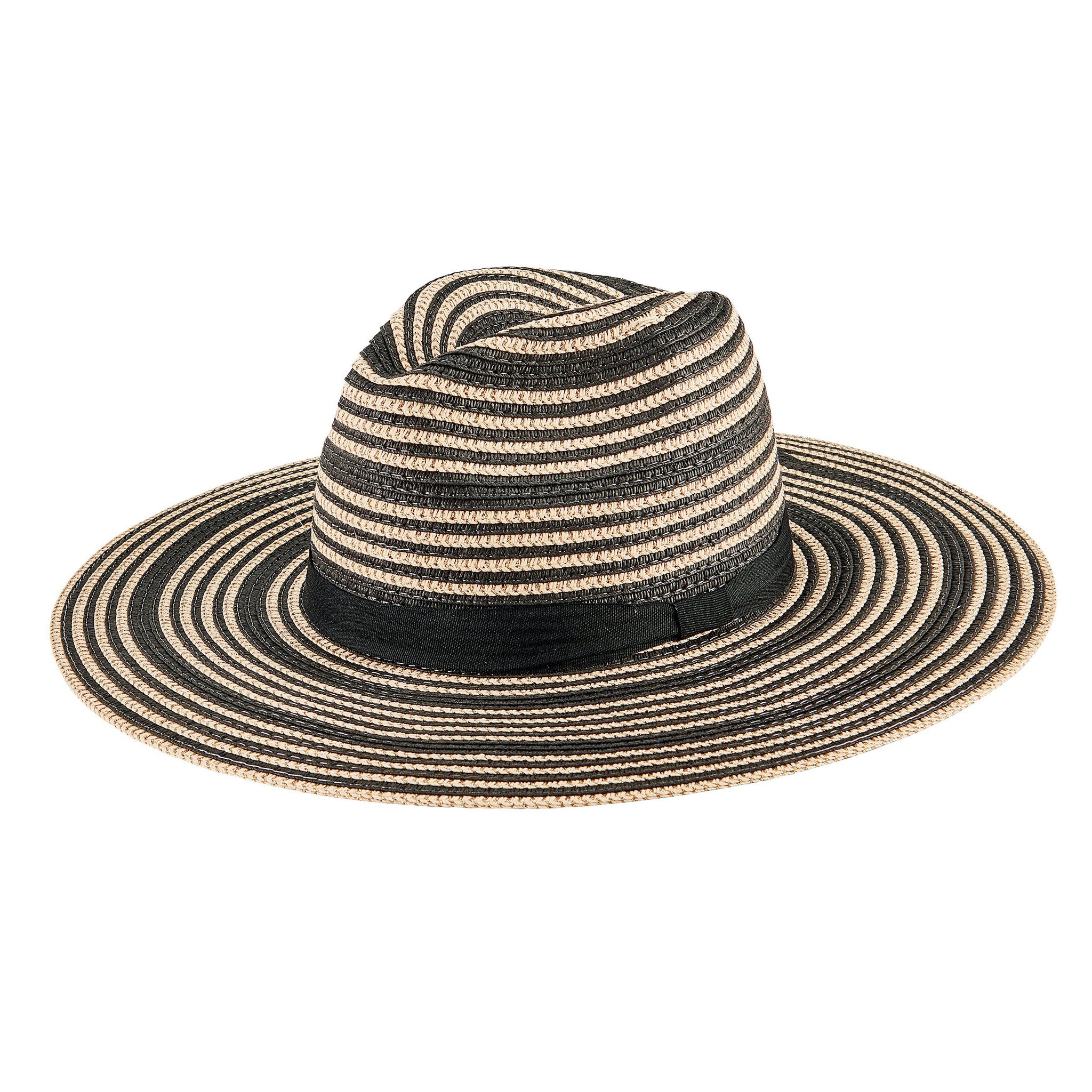 Need a new vacation hat? This striped floppy fedora is a gorgeous way to keep your face out of the sun with a bit more personality than a classic sun brim. With three colors to choose from, you're sure to find a hat that suits your summer style. 100% paper 4" brim Women's One Size