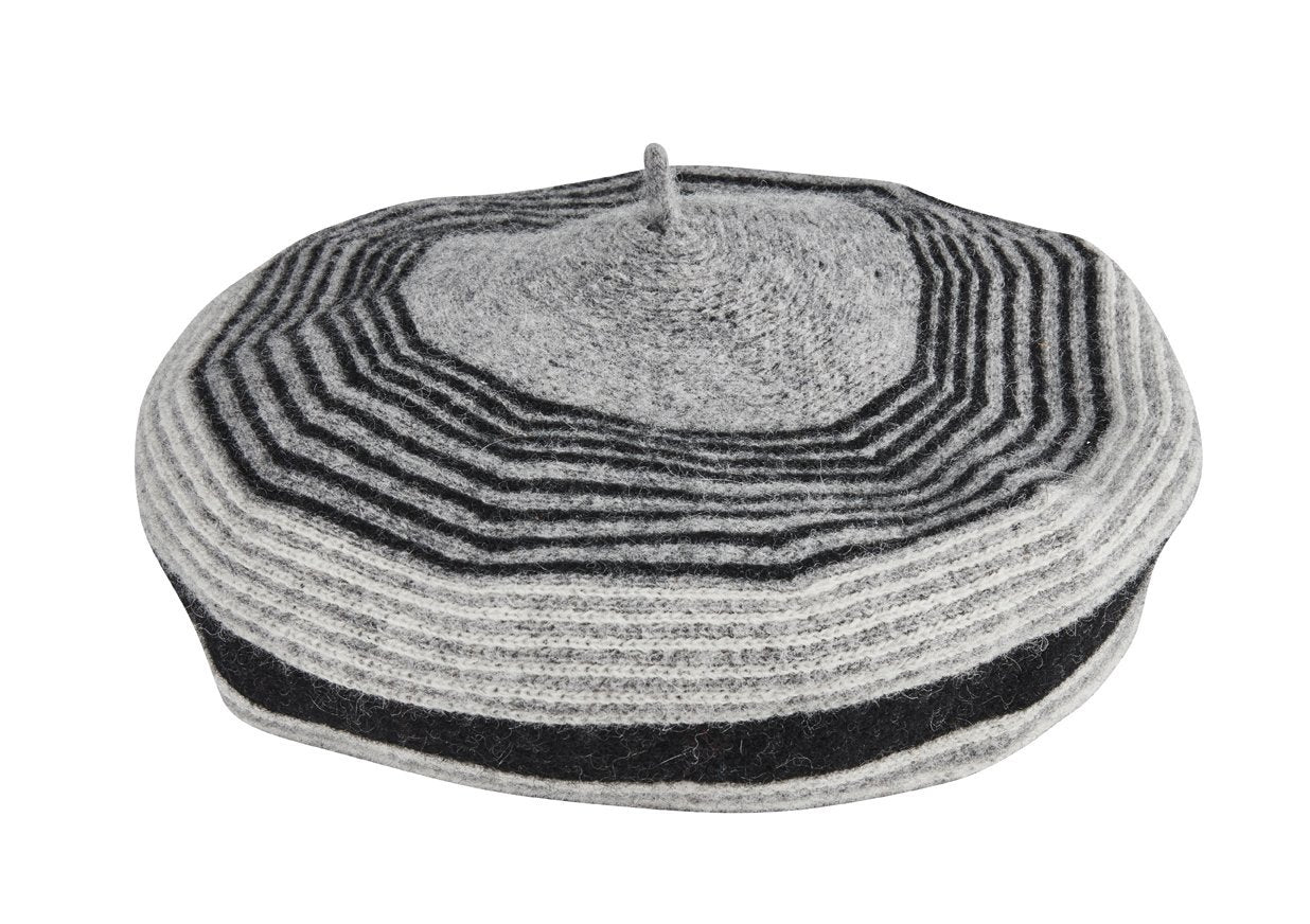 This tri-color striped beret is a chic addition to any outfit. Wear this in the daytime or evening to stay stylish all day long.