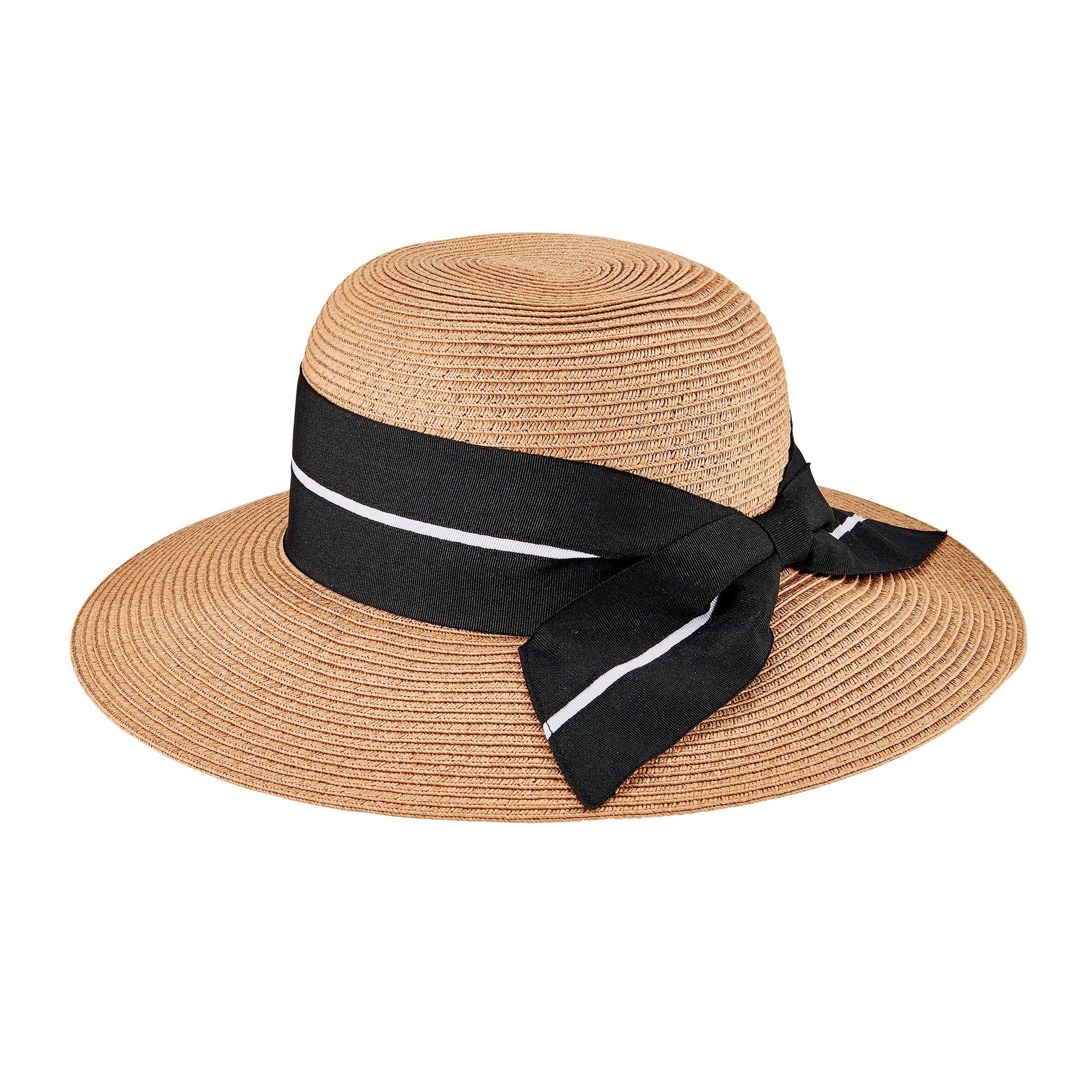 Need a new sun hat? This charming sun hat features an oversize bow with a stripe down the middle for a charming, modern look. Available in two colors, this hat will look great dressed up or casual.100% paper3.75" brimWomen's One Size